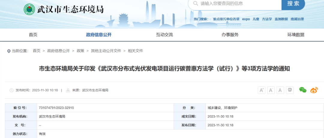 武漢市分布式光伏等3項碳普惠方法學正式發布
